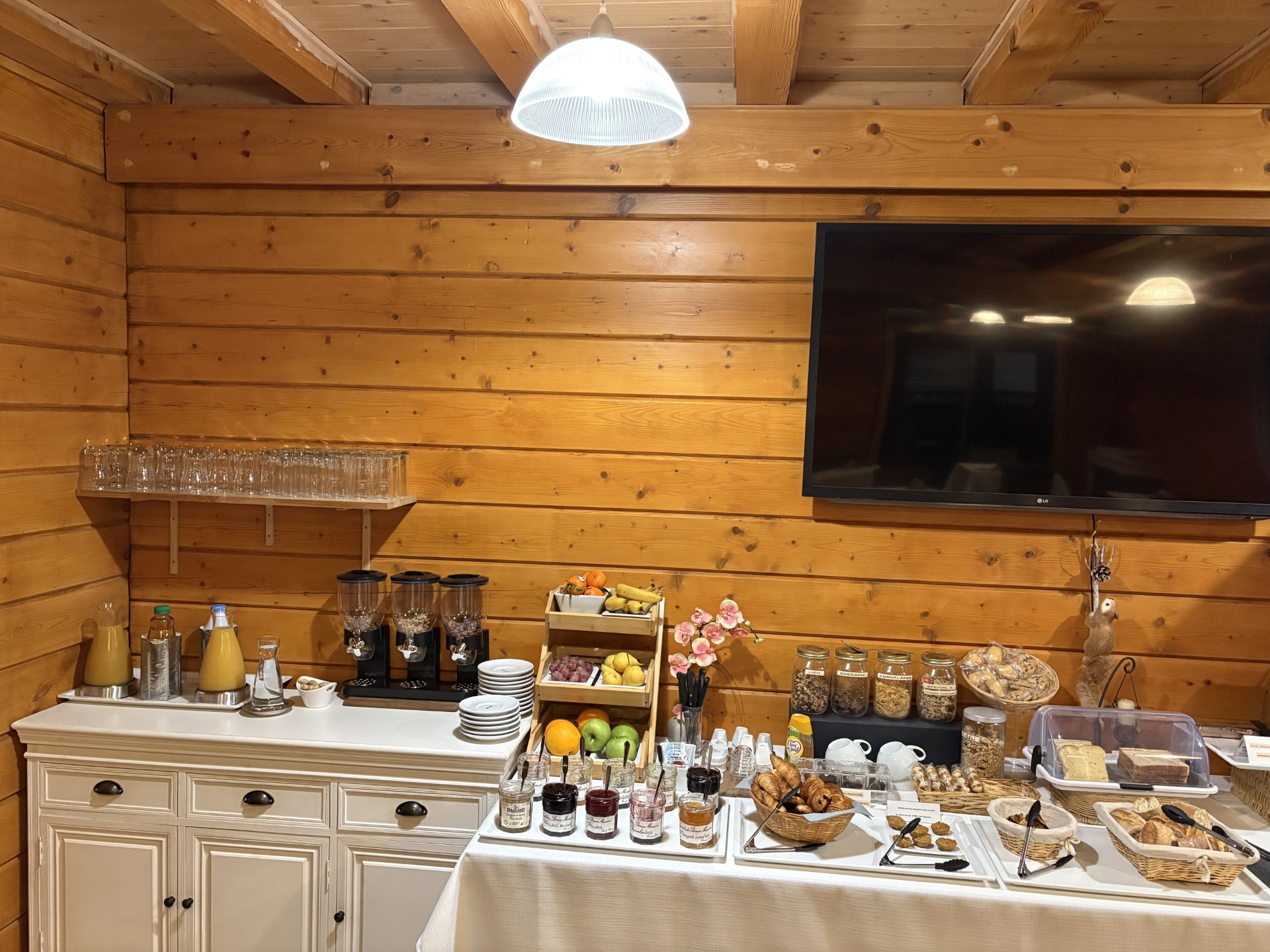 Chaque matin est préparé avec soin un buffet gourmand et varié pour bien démarrer la journée.Au menu : viennoiseries croustillantes, pains frais et grillés, toasts et brioche, pâtisseries maison, confitures, fruits de saison et fruits secs, céréales, produits laitiers, charcuteries et fromages, oeufs, jus de fruits et boissons chaudes à volonté.